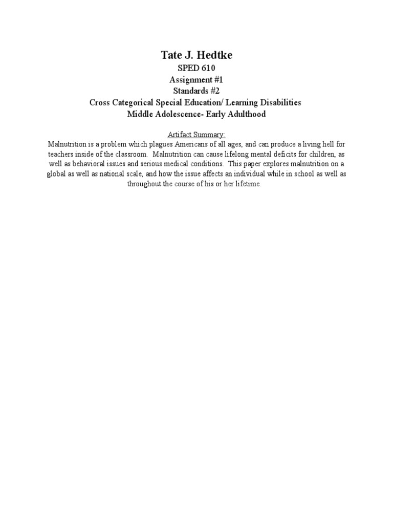 well as behavioral issues and serious medical conditions. This paper explores malnutrition on a