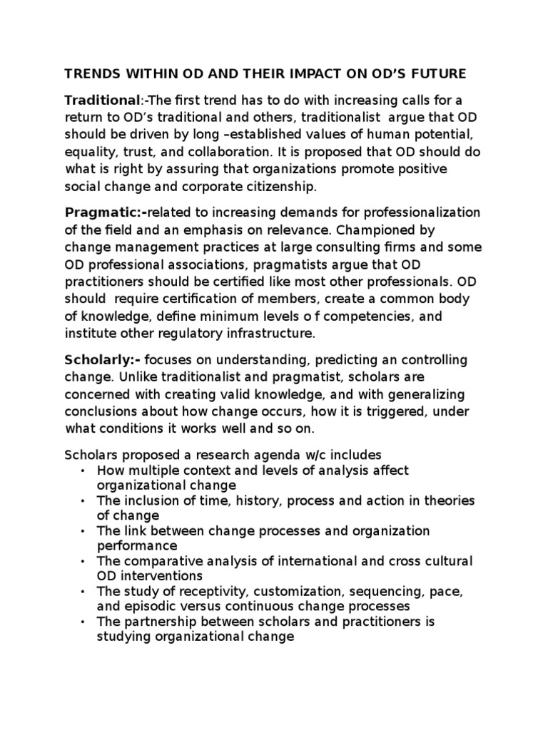 TRENDS WITHIN OD AND THEIR IMPACT ON ODS FUTURE
