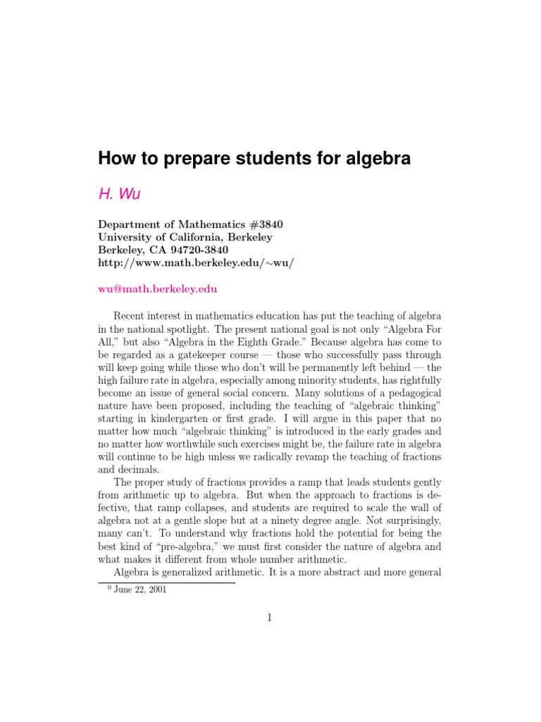 prepare students for algebra? In the absence of firm data, one can only offer