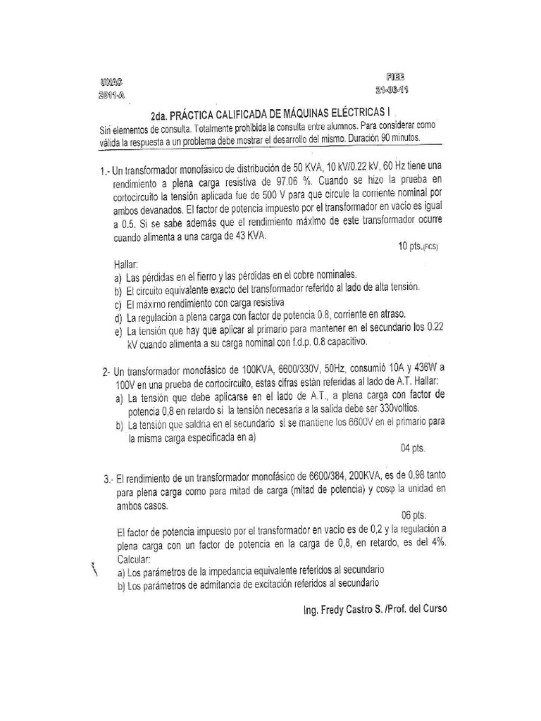 2a. PRACTICA CALIFICADA DE MAQUINAS ELECTRICAS |