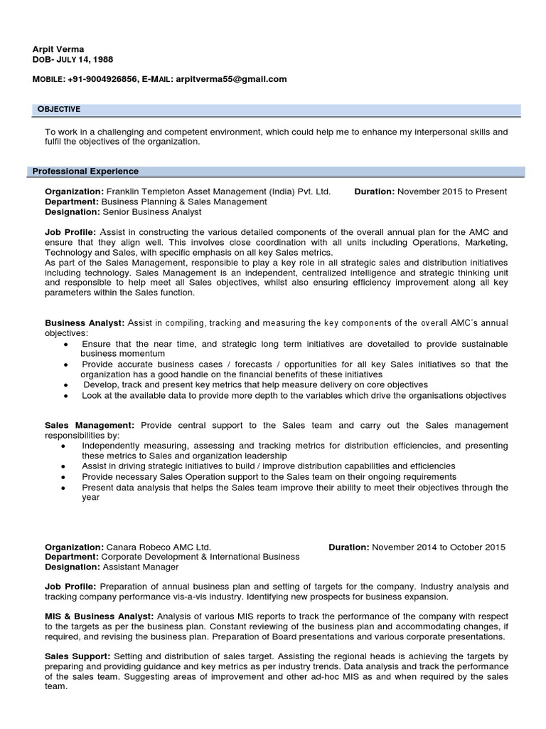 Job Profile: Assist in constructing the various detailed components of the overall annual plan for the AMC and