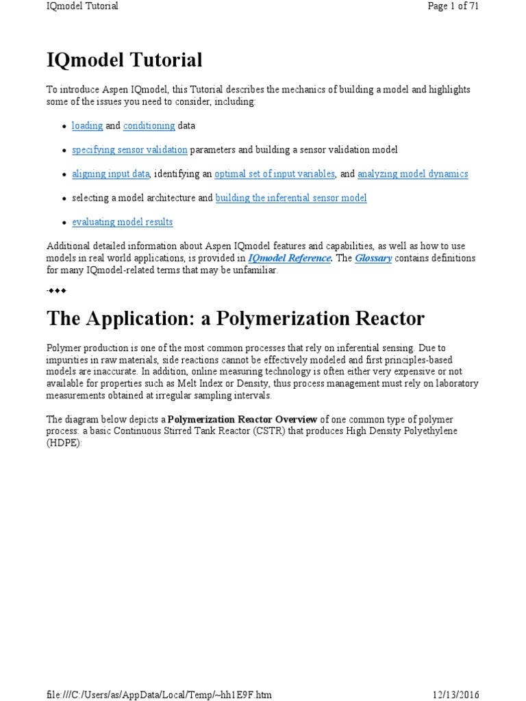 To introduce Aspen IQmodel, this Tutorial describes the mechanics of building a model and highlights