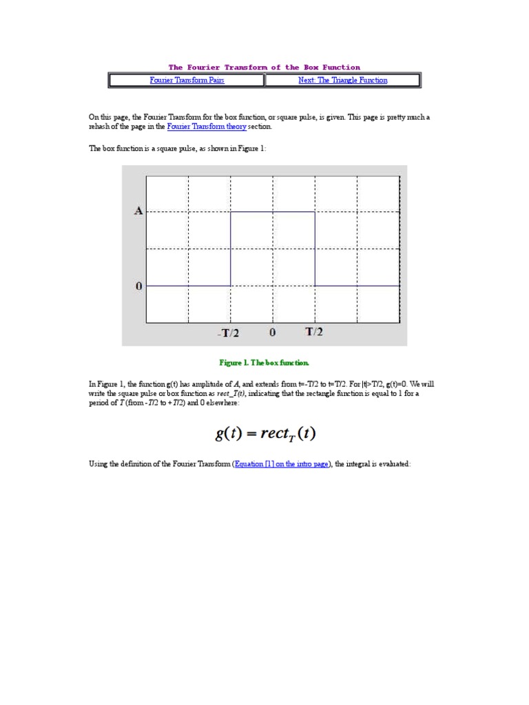 The box function is a square pulse, as shown in Figure 1: