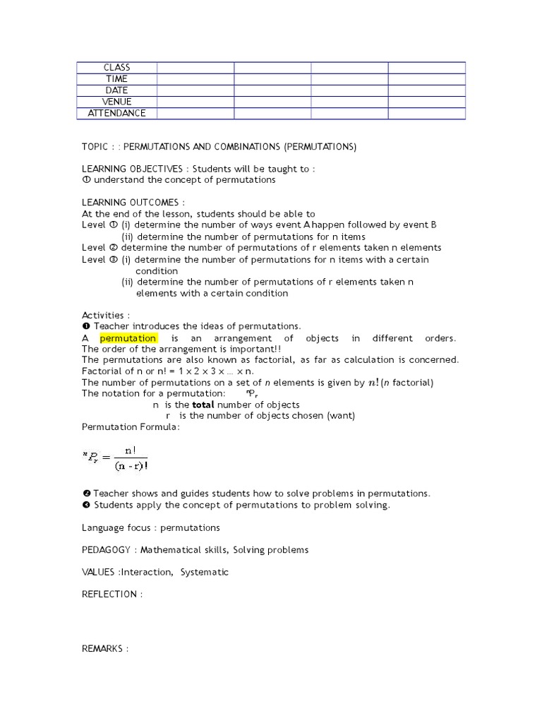 TOPIC : : PERMUTATIONS AND COMBINATIONS (PERMUTATIONS)