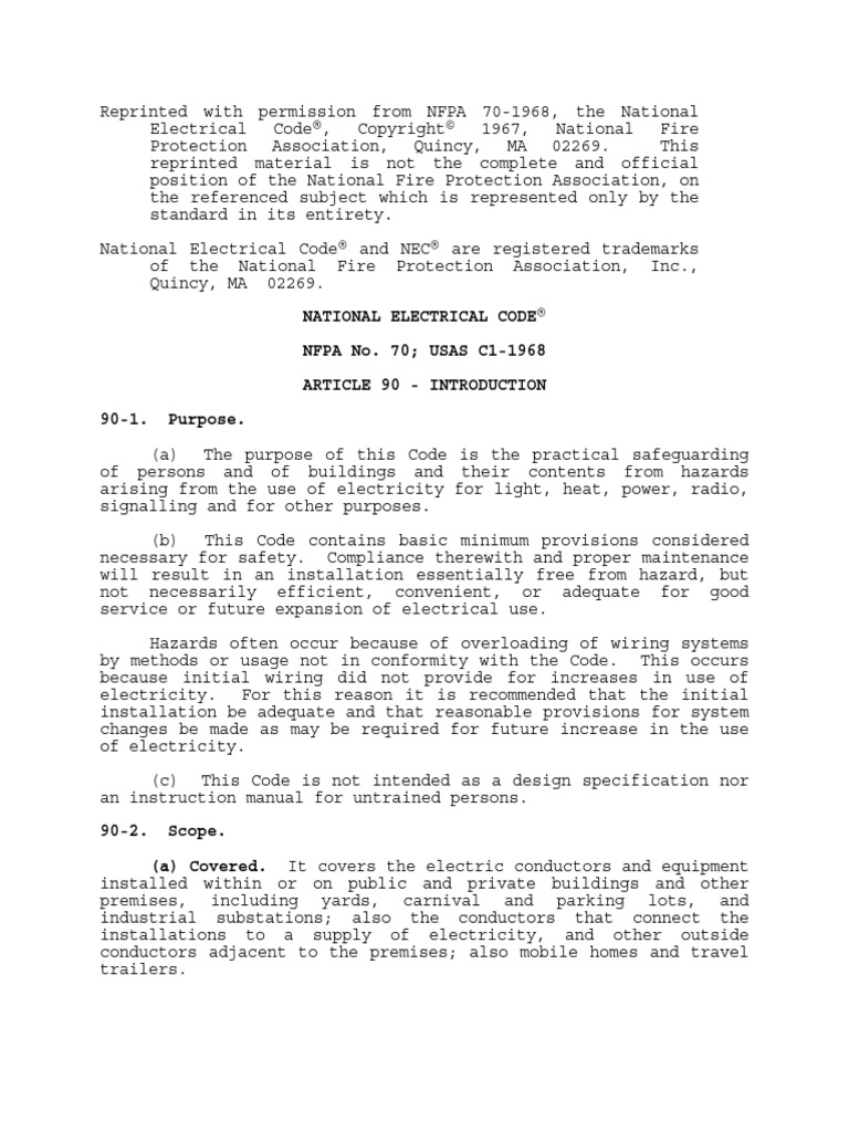 NFPA No. 70; USAS C1-1968