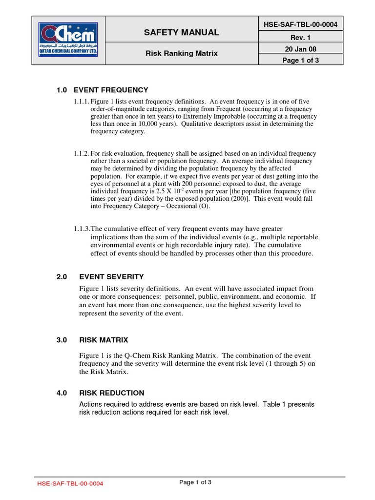 Figure 1 is the Q-Chem Risk Ranking Matrix. The combination of the event