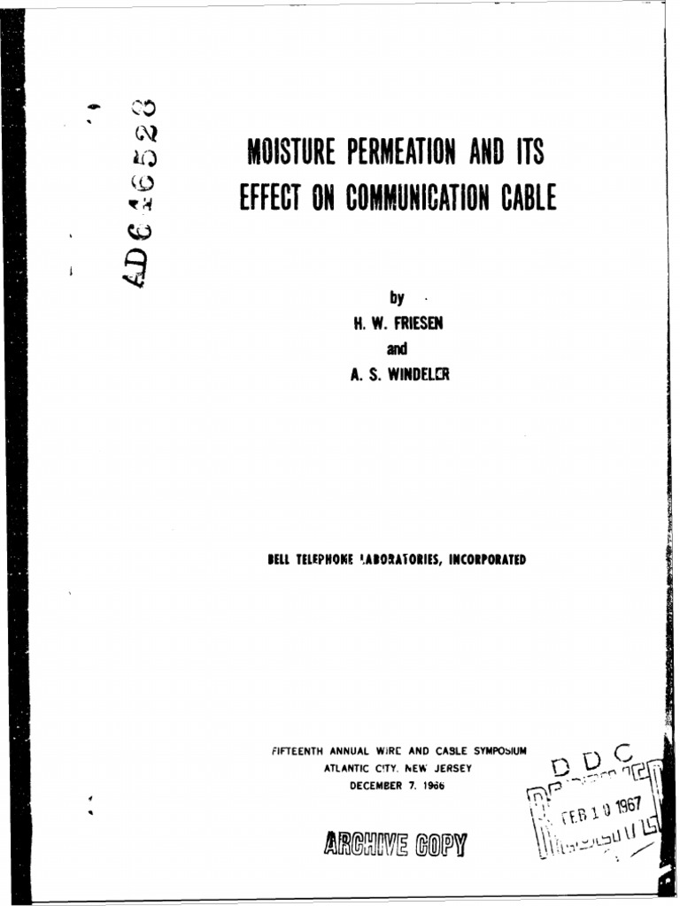 permeation of water vapor through plastic sheath is discussed