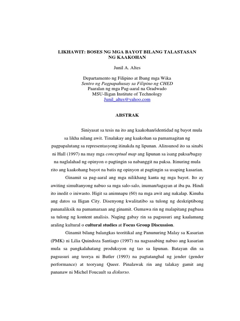Siniyasat sa tesis na ito ang kaakohan/identidad ng bayot mula