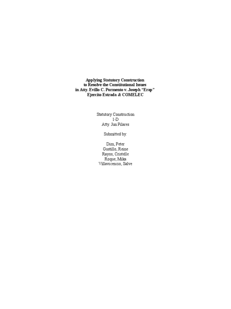 The case of Atty. Evillo C. Pormento v. Joseph Erap Ejercito Estrada & Commission of