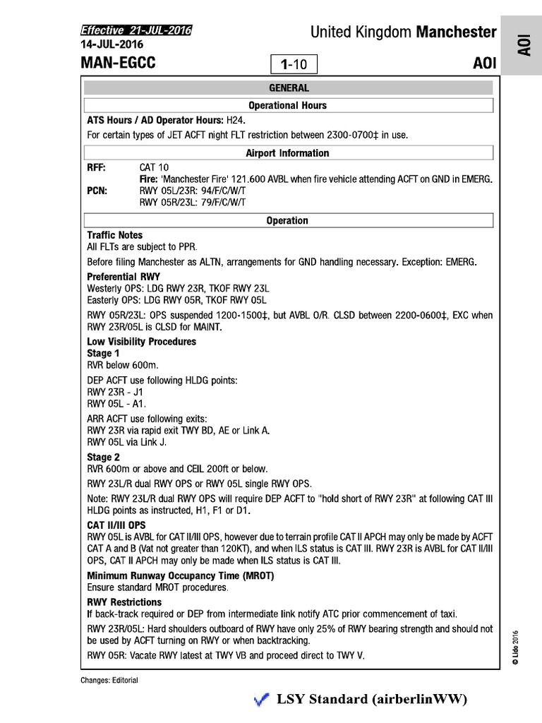 Before filing Manchester as ALTN, arrangements for GND handling necessary. Exception: EMERG.