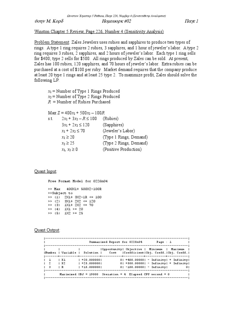 Winston Chapter 5 Review, Page 226, Number 4 (Sensitivity Analysis)