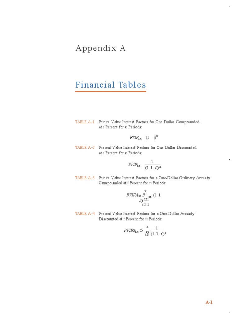 Fi n anc ia l Tab le s