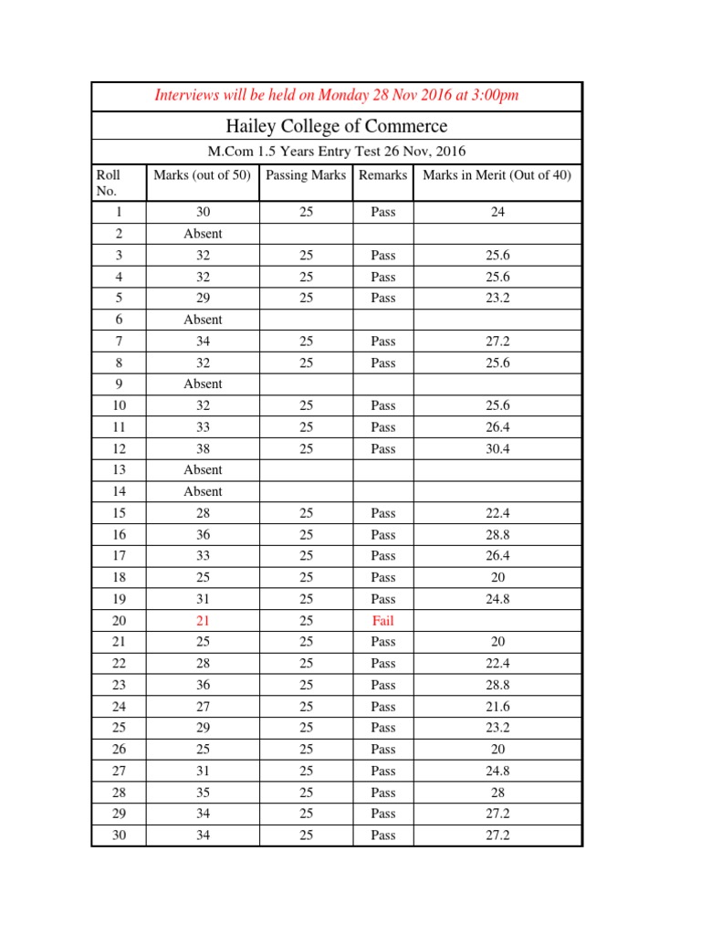 Passing Marks Remarks