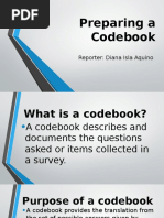 A codebook describes the contents, structure, and layout of a data collection. A well-documented