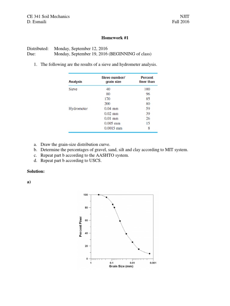 1. The following are the results of a sieve and hydrometer analysis.