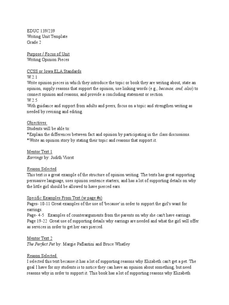 Writing Unit Template