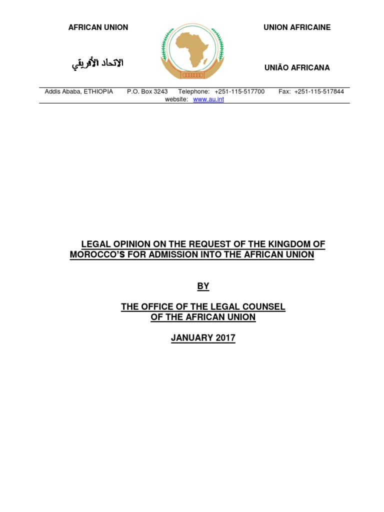 1. The starting point is that the African Union (AU) is established in accordance with the provisions of the Constitutive Act, which is the founding and guiding document of the Union. The issue of admission of the Kingdom of Morocco to the African Union must be examined with due regard to its fundamental provisions. 2. Article 3 of the Constitutive Act sets out the objectives of the Union, while Article 4 stipulates the principles by which the Union shall function. 3. Articles 4 (b) (e) (f) and (i) specifically speak to the issue of respect of borders existing on achievement of independence, peaceful resolution of conflicts, prohibition on the use or threat to use force and peaceful co-existence and the right to live in peace and security of member states of the Union. 4. It should be recalled that the Sahrawi Arab Democratic Republic is a member state of the African Union having formally been admitted in 1983 as a member state of the OAU and subsequently as a founding member state of the Union that enjoys the same rights and is subject to similar obligations as other member states of the Union. 5. The presence of Morocco in Western Sahara territory is considered by the United Nations (UN) and the African Union as occupation (See UN General Assembly Resolution 34/37 of 1979 and various relevant OAU/AU decisions), which is against the founding principles and objectives of AU as articulated in Articles 3 and 4 of the Constitutive Act. Western Sahara remains on the UN list of Non Self-Governing Territories after the abandonment of administrative