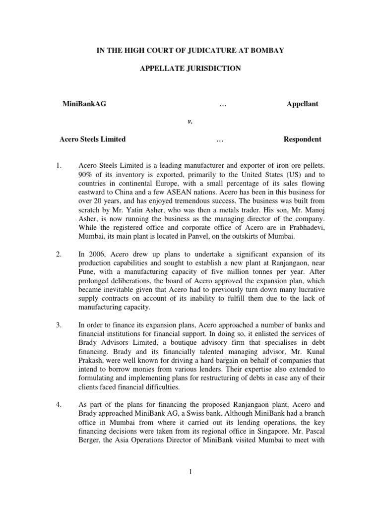 Bombay High Court granted Aceros pleas, against which MiniBank preferred an