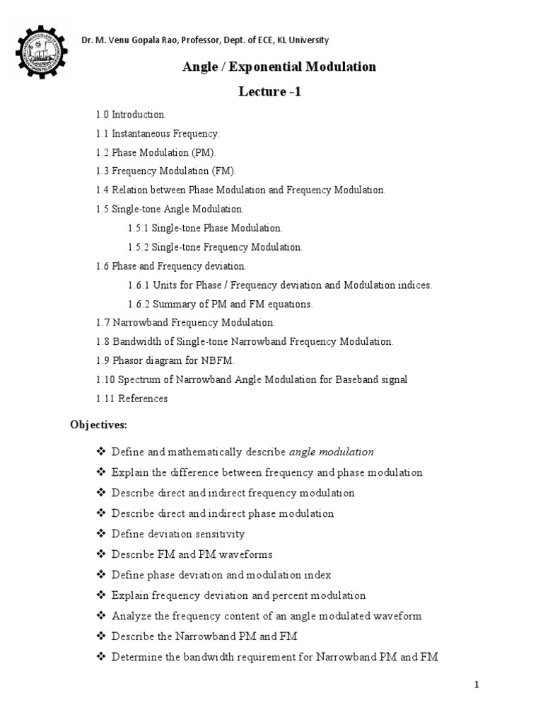 1.4 Relation between Phase Modulation and Frequency Modulation.