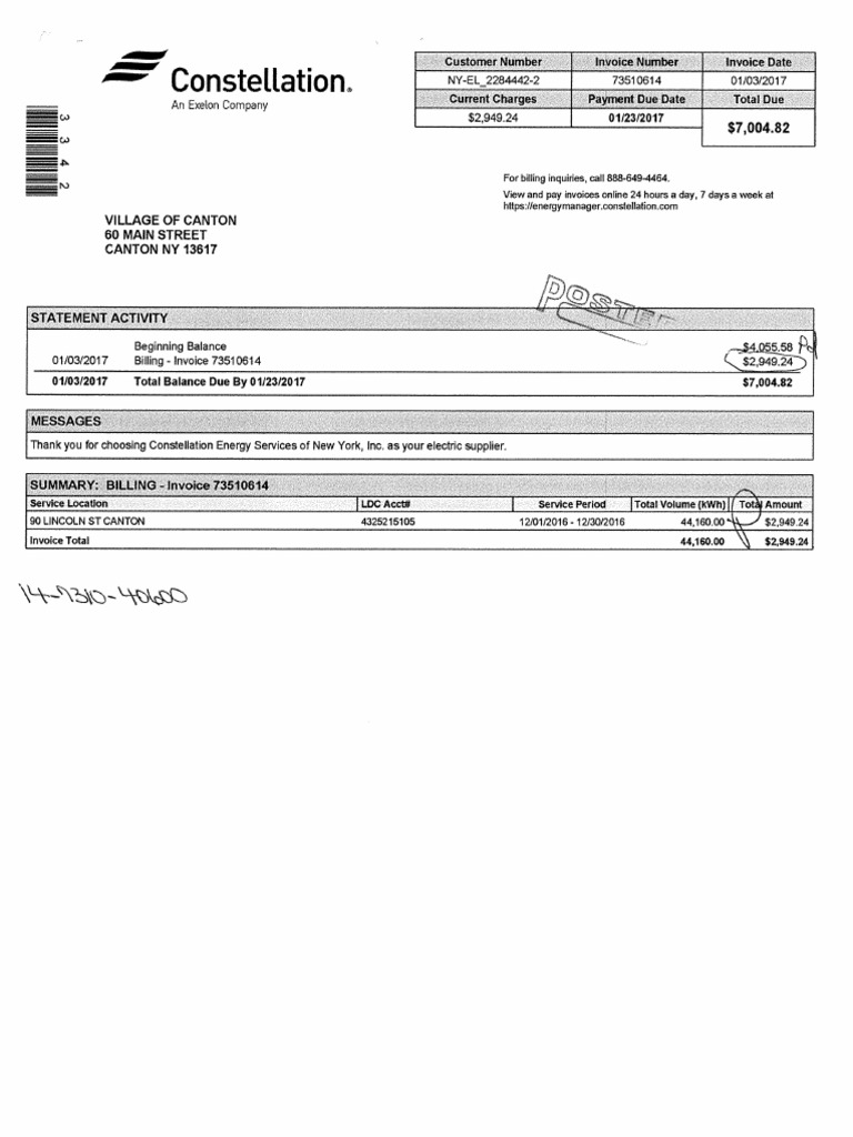 ‘Thank you for choosing Constellation Energy Services of New York, Ine. as your electric supple.