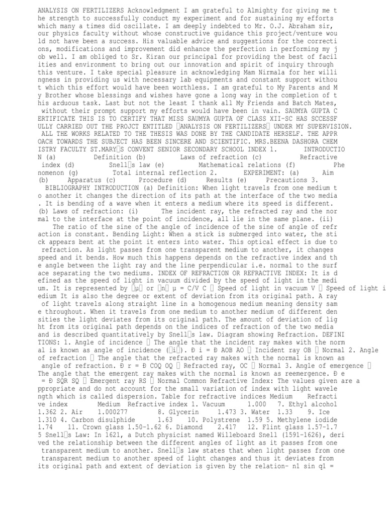 ANALYSIS ON FERTILIZERS Acknowledgment I am grateful to Almighty for giving me t