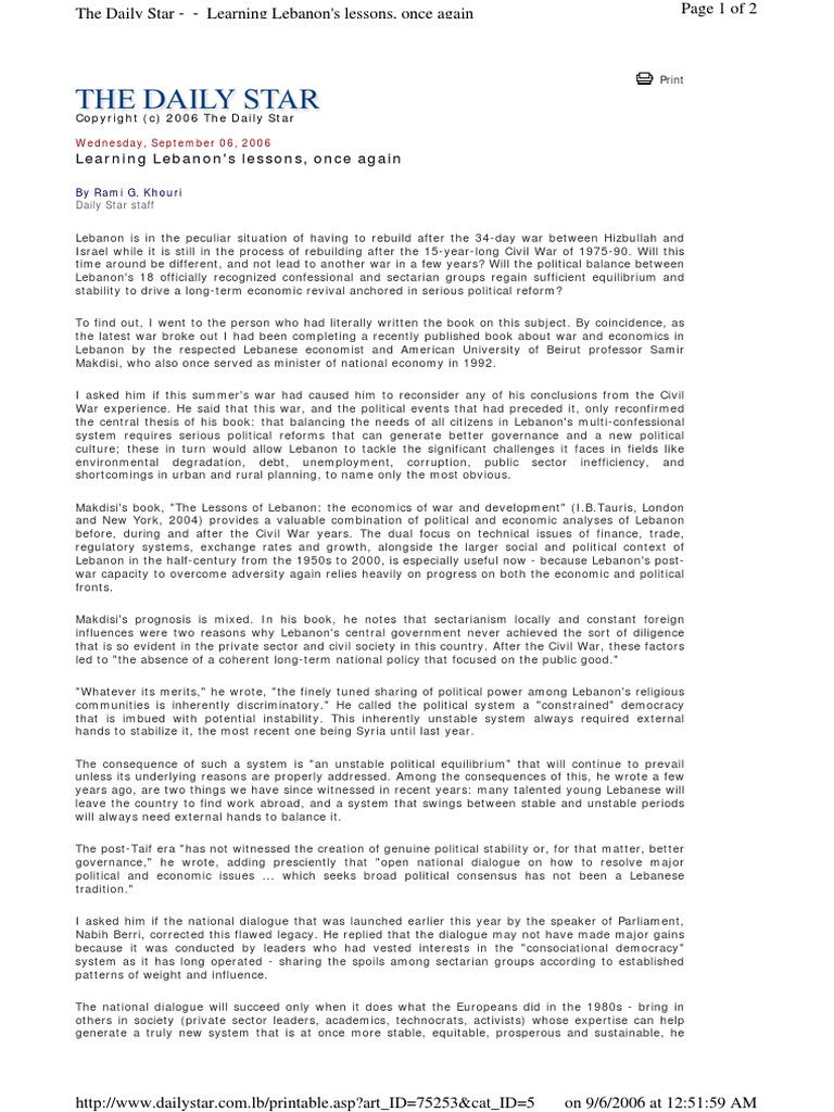 Makdisi's book, "The Lessons of Lebanon: the economics of war and development" (I.B.Tauris, London