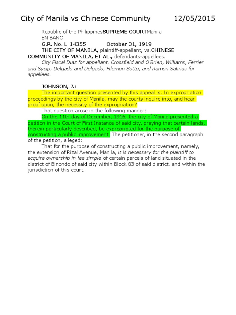 City of Manila vs Chinese Community 12/05/2015