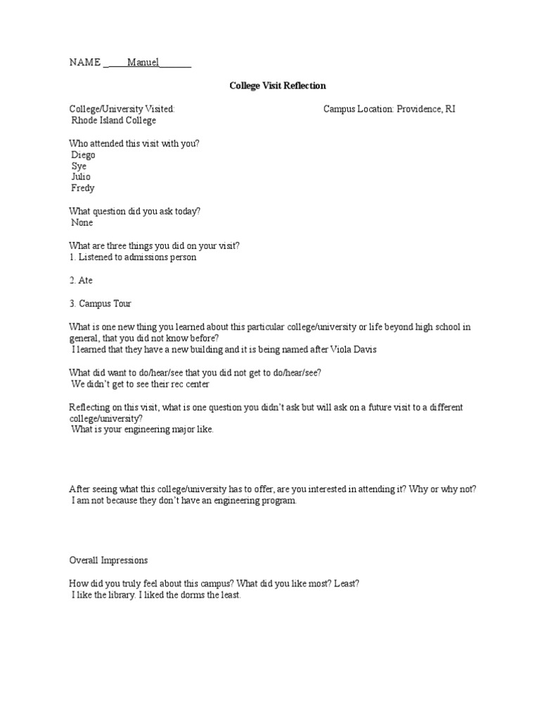 College Visit Reflection