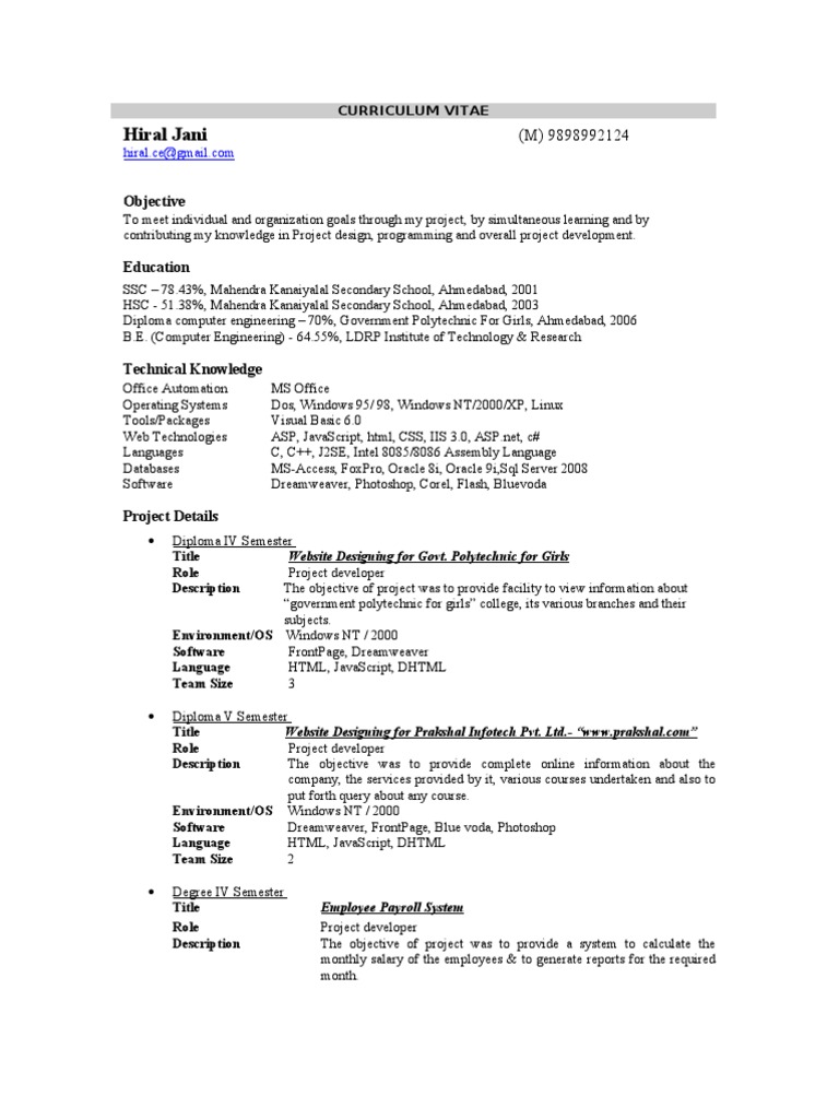 Diploma computer engineering – 70%, Government Polytechnic For Girls, Ahmedabad, 2006