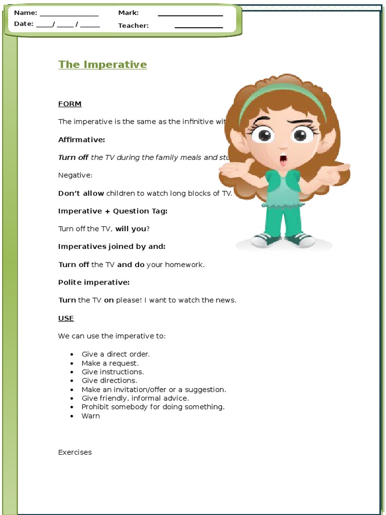 A- Decide whether each sentence is an instruction, a prohibition, an order,