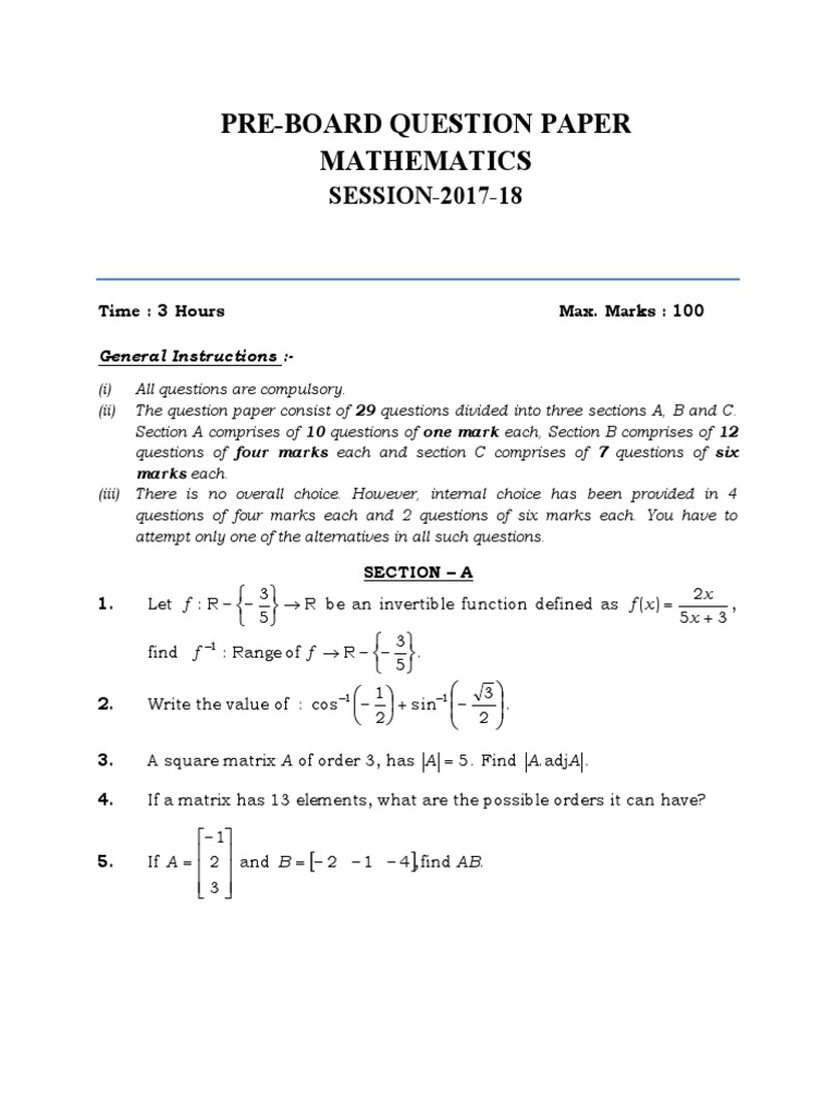 PRE-BOARD QUESTION PAPER