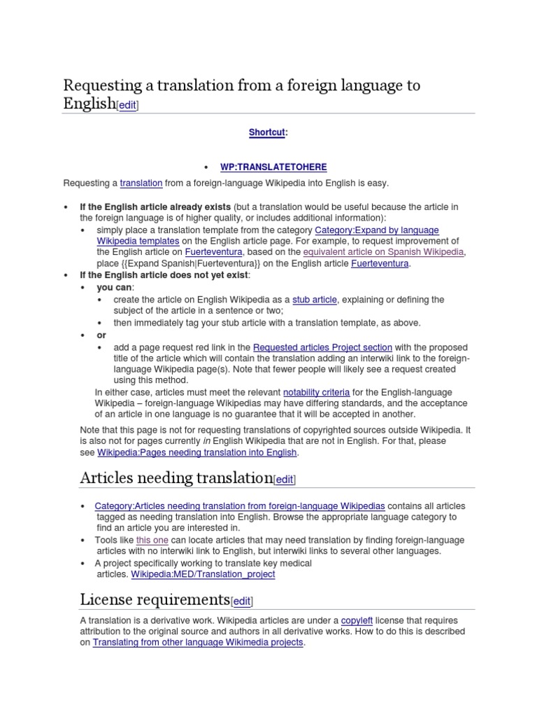 Requesting a translation from a foreign-language Wikipedia into English is easy.