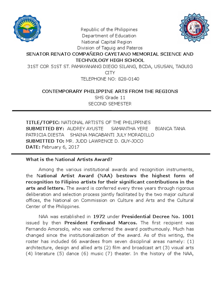 TITLE/TOPIC: NATIONAL ARTISTS OF THE PHILIPPINES