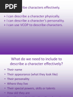 things character says. Use quotes that s/he typically says and the type of