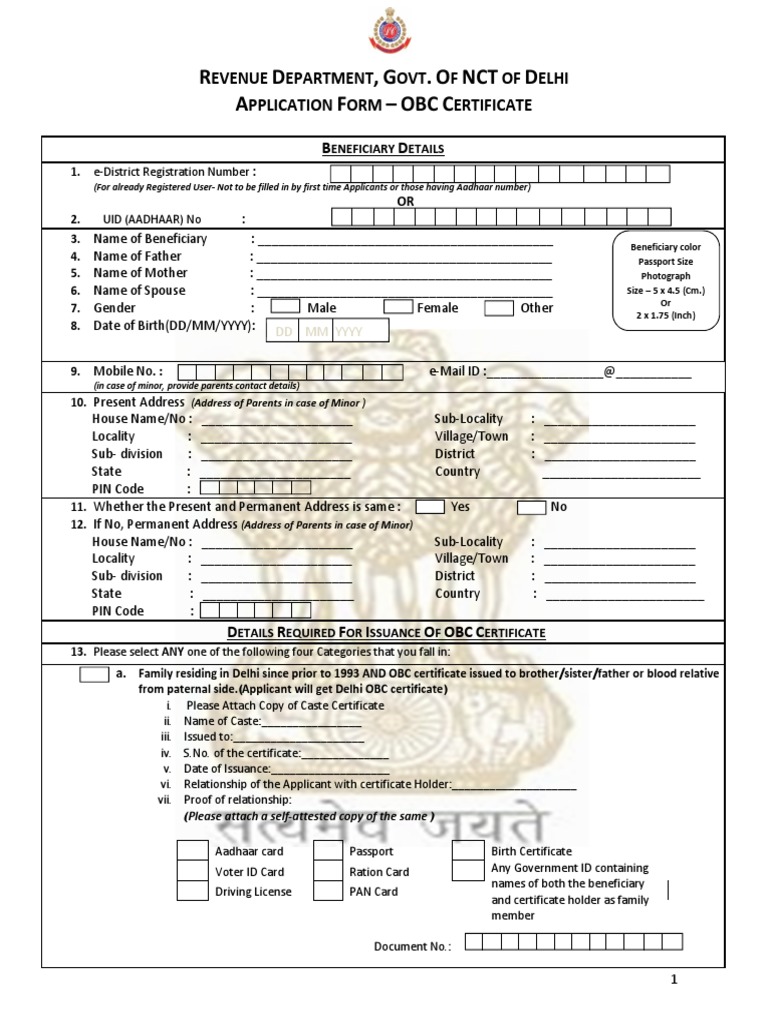 a. Family residing in Delhi since prior to 1993 AND OBC certificate issued to brother/sister/father or blood relative