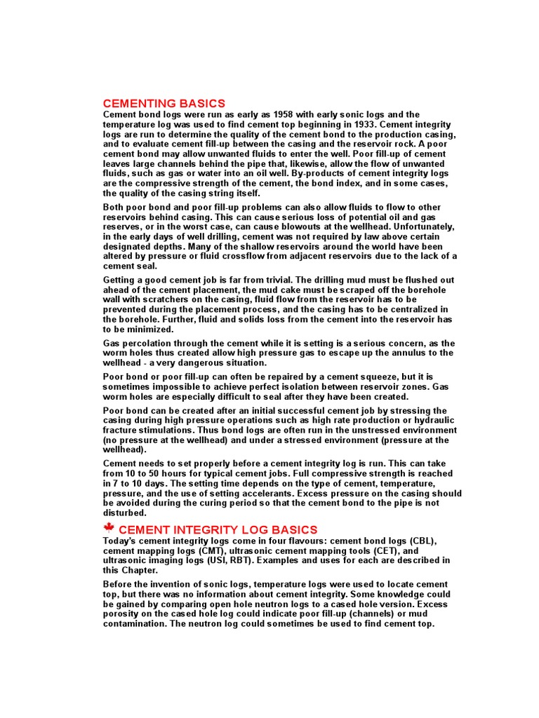 fluids, such as gas or water into an oil well. By-products of cement integrity logs