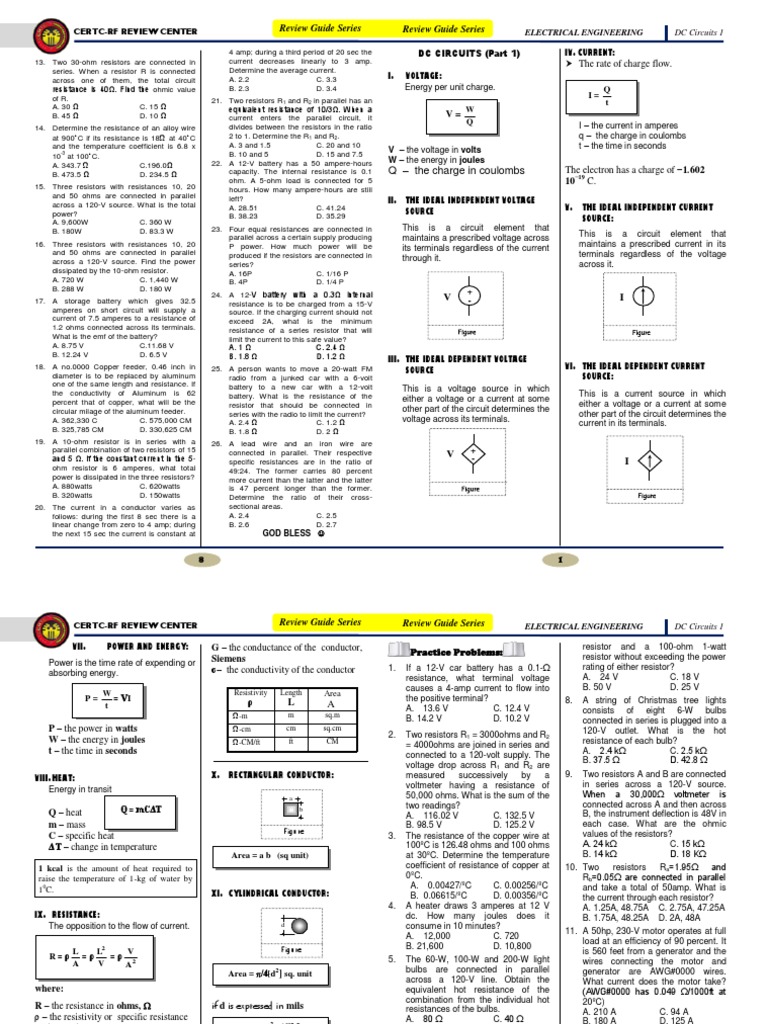 CERTC-RF REVIEW CENTER Review Guide Series Review Guide Series ELECTRICAL ENGINEERING DC Circuits 1