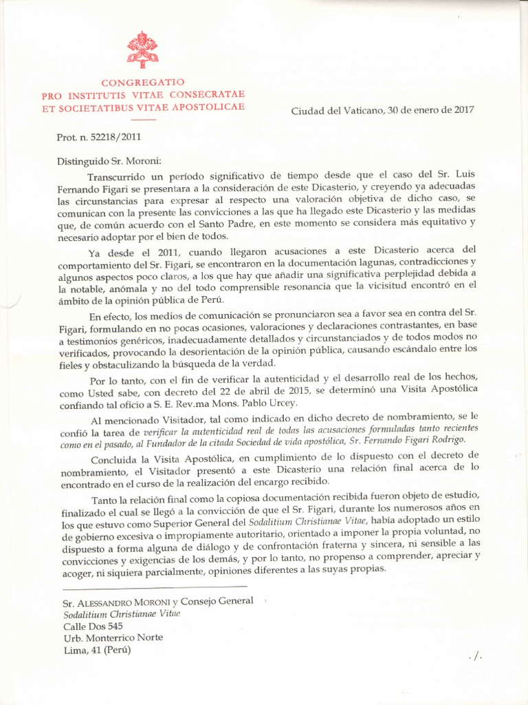 modo al Sodalitium Christianae Vitae, con las que el Sr. Figari ha tenido dicho comportamiento