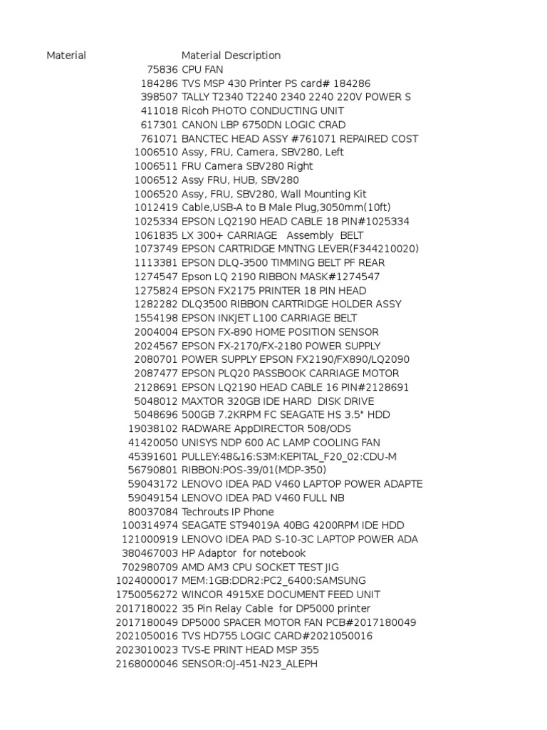 Material Material Description