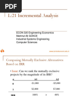 Once the cash flows are tabulated determine the incremental rate of return on the extra