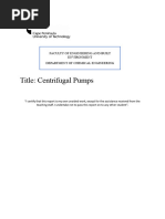 Centrifugal Pump Experiment Technical Memo