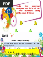 This document provides instructions to find the lowest common multiple (LCM) of a set of numbers. It lists 10 number pairs and asks the reader to find the LCM of each pair. The document does not provide the LCMs as answers.