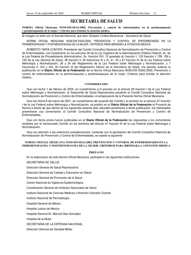 NORMA Oficial Mexicana NOM-035-SSA2-2002, Prevencin y control de enfermedades en la perimenopausia