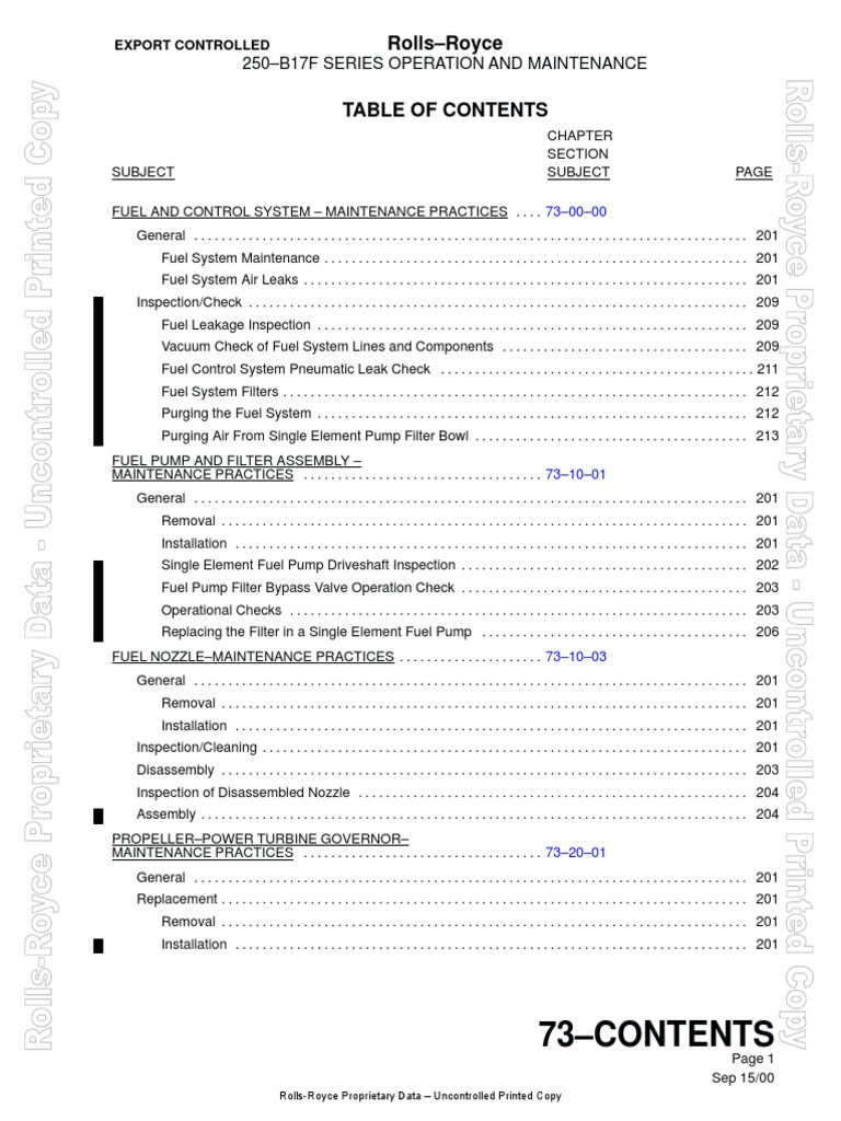FUEL AND CONTROL SYSTEM MAINTENANCE PRACTICES . . . . 730000