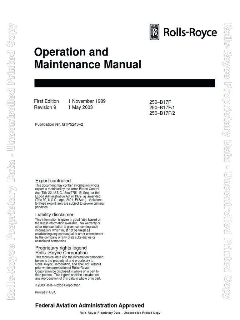 Rolls-Royce 250-B17F Maintenance Manual