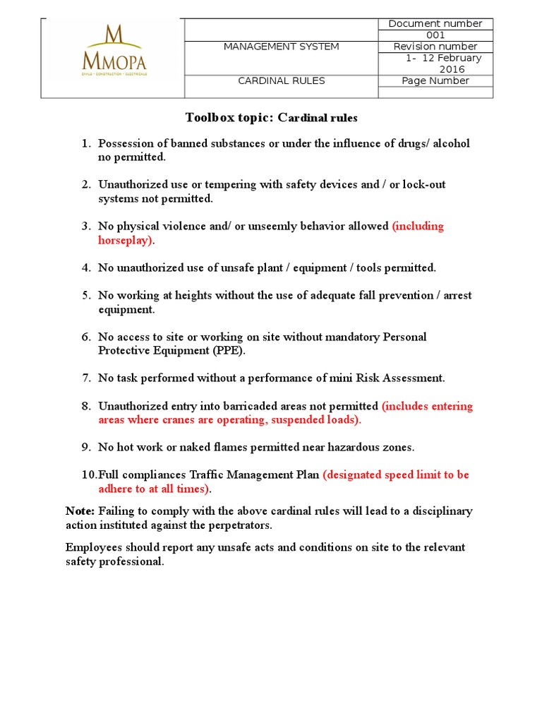Note: Failing to comply with the above cardinal rules will lead to a disciplinary