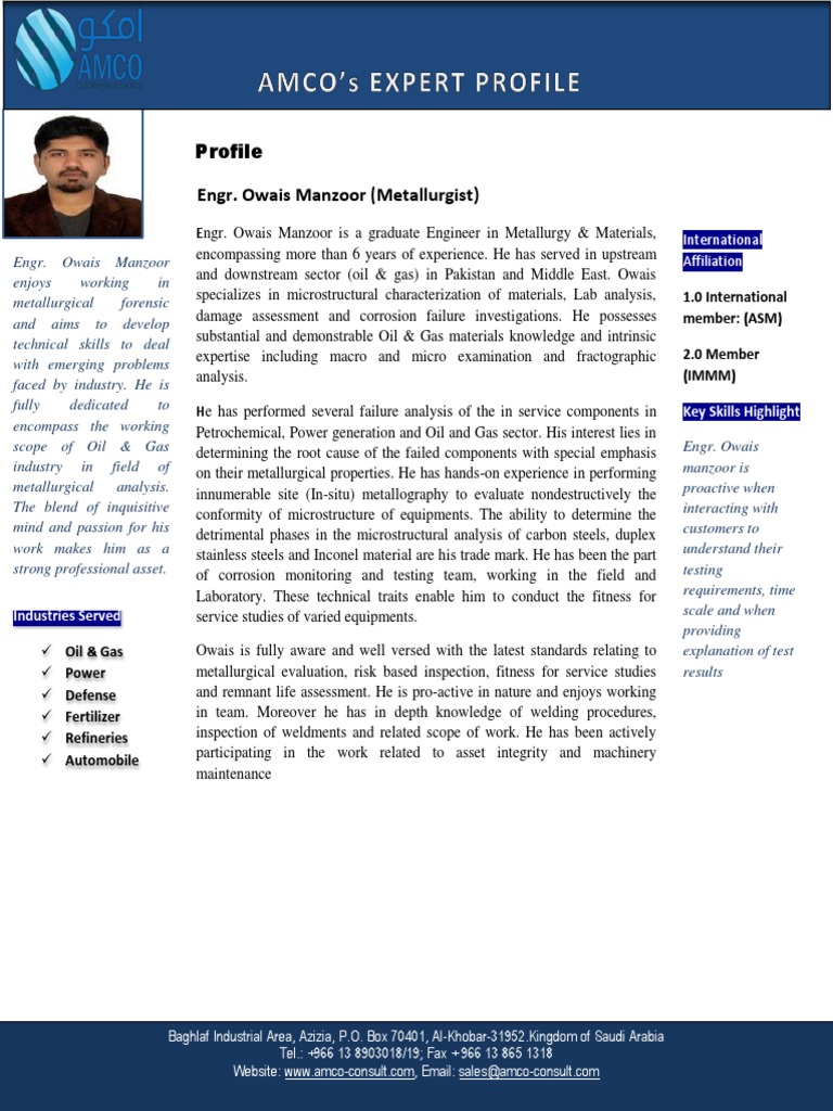 industry in field of on their metallurgical properties. He has hands-on experience in performing manzoor is