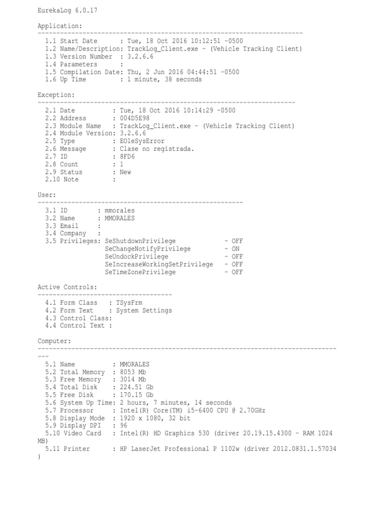 1.2 Name/Description: TrackLog_Client.exe - (Vehicle Tracking Client)