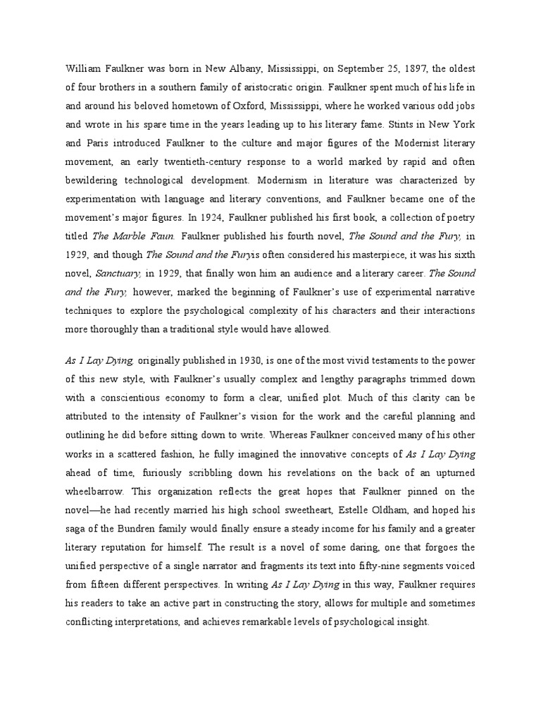 engrained in the fabric of As I Lay Dying. Faulkner proved to be unusual in his ability to