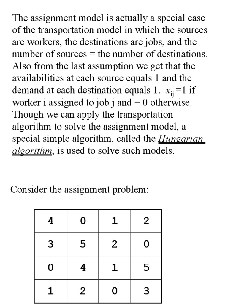 cells with zero cost (at least one will exist in each row (column)). If possible,